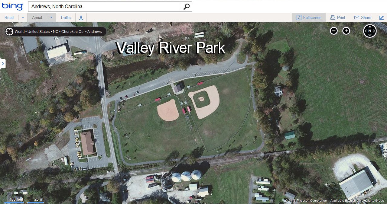 Trail InformationThe trail at the Valley River Park encircles the base ball and multi-purpose fields used by the schools and community. The near half mile (2350 foot walkway) is 10 feet wide asphalt and is an excellent surface for exercise walking and learning bikers. The trail winds amid flowers, shrubs, and trees along Tatham Creek and the Valley River. Complementing the trail is a Fishing Pier that was constructed and funded by the NC Fish and Wildlife. Adjacent is river access for canoe, kayak, or tubing activities. Park benches are located appropriately for rests and meditation. Trash containers and plenty of parking are available. Professional landscaping is maintained by volunteers. |